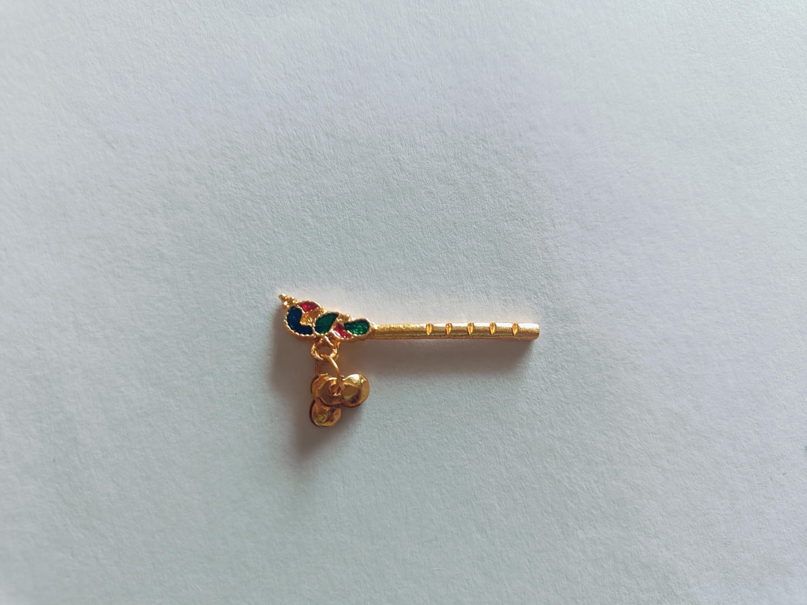 Experience the divine melodies with our exquisitely crafted Metal Bansuri. Made from high-quality metal, this bansuri is designed to produce clear, soothing sounds that are perfect for devotional music and spiritual practices. Its sturdy construction ensures durability, while the precise craftsmanship enhances its aesthetic appeal. Whether used in worship, meditation, or as a decorative piece, this metal bansuri adds a touch of elegance and tranquility to any setting. Ideal for both beginners and experienced players, it is a versatile instrument that embodies the essence of traditional music and spirituality